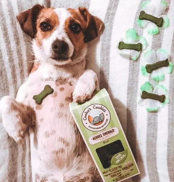 Acores Emerald – Superfood Voor Superhonden. Gemaakt Van Kakelverse Appels En Spirulina, Een ‘Krachtige’ Bron Van Voedingsstoffen En Een Natuurlijke ‘Alg’ Met Een Ongelooflijk Hoog Eiwitgehalte. Onze Smaragdgroene Traktaties Zijn Ook Rijk Aan Chlorofyl, Dat Helpt Om Gifstoffen Te Verwijderen. Of Zoals Cooka Zegt: “Bijna Als Een Doggy Multivitamine.”