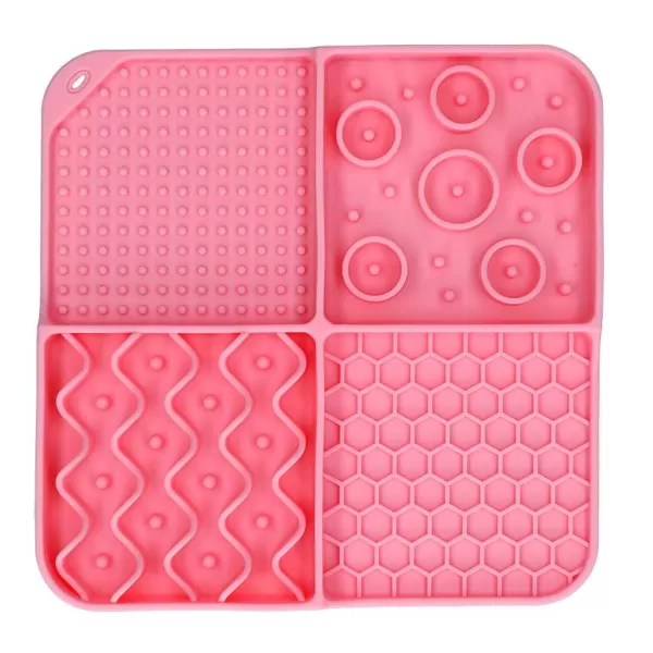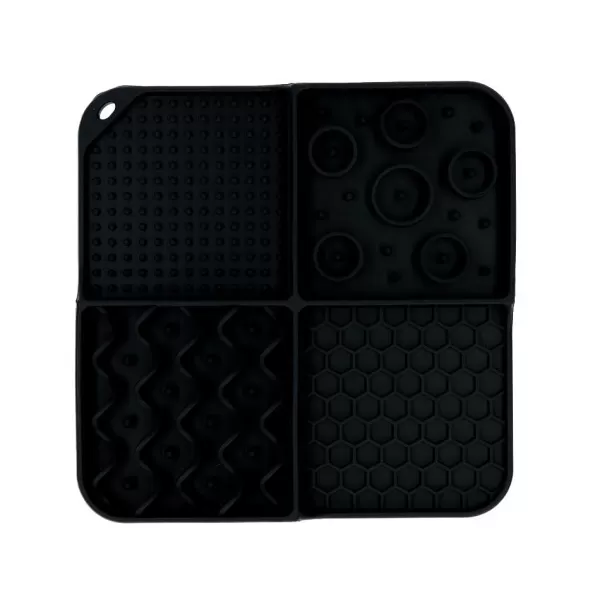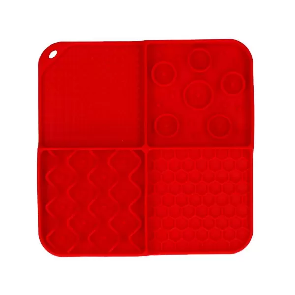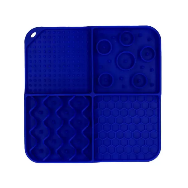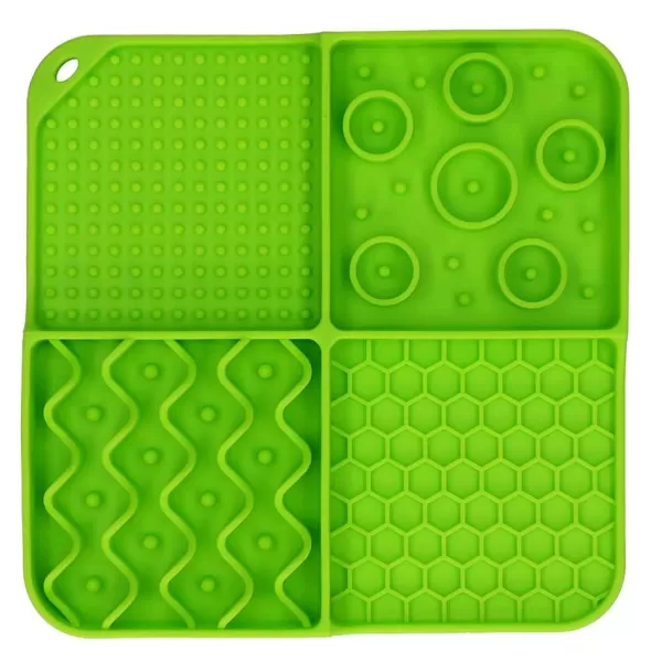 Deze Vierkante Likmat Met 4 Patronen (Nopjes, Rondjes, Golven En Honingraat) En Diepe Vakjes Maakt Het Oplikken Van Al Het Lekkers Extra Uitdagend! De Hond Of Kat Zal Goed Zijn Best Moeten Doen Om Alles Tussen De Nopjes En In De Hoekjes Op Te Likken. Dankzij De Zuignapjes Aan De Onderzijde Kun Je De Likmat Goed Bevestigen Aan Een Gladde Ondergrond, Zodat Deze Niet Verschuift Terwijl De Hond Of Kat Ermee Bezig Is.