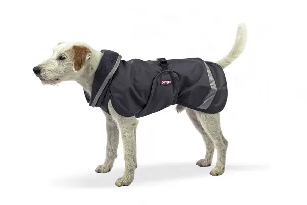 Kevytpomppa Is Een Met Bont Gevoerde Regenjas Die De Hond Droog En Comfortabel Houdt In Het Tussenseizoen, Nu Verkrijgbaar Met Een Harnasopening. De Waterdichte En Duurzame Schaalstof Beschermt De Hond Tegen Regen, Wind En Vuil. De Voering Is Gemaakt Van Zacht Synthetisch Bont Dat Effectief Isoleert. De Antistatische Materialen Zorgen Ervoor Dat Zelfs Bij Een Langharige Hond De Vacht Niet In De War Raakt.