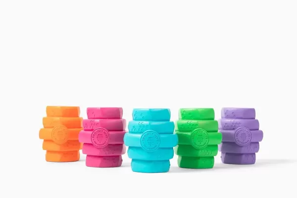 | Maat | blauw (vanille geur), groen (cocos geur), paars (lavendel geur), oranje (mango geur), roze (bosbessen geur) |