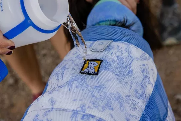De Ruffwear Swamp Cooler Koelvest Houdt De Hond Koel Tijdens Warm Weer. Maak De Jas Nat Met Water, Wring Hem Uit En Doe Hem Aan Bij De Hond.