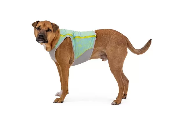 Het Ruffwear Swamp Cooler Zip Vest Koelt De Hond Door De Warmte Te Absorberen En Af Te Staan Aan De Omgeving. Dit Koelvest Gaat Werken Als De Hond Het Nodig Heeft. Het Vest Is Licht In Gewicht En Bevat Een Ritssluiting. De Bovenkant Van Het Vest Is Van Dun Spandex Materiaal Dat De Zon Reflecteert En De Borst Van De Hond Wordt Gekoeld Door De 3 Laagse Constructie Aan De Onderkant.